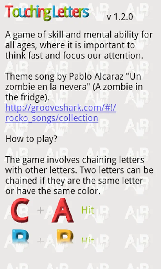 The game involves chaining letters with other letters. Two letters can be chained if they are the same letter or have the same color.
