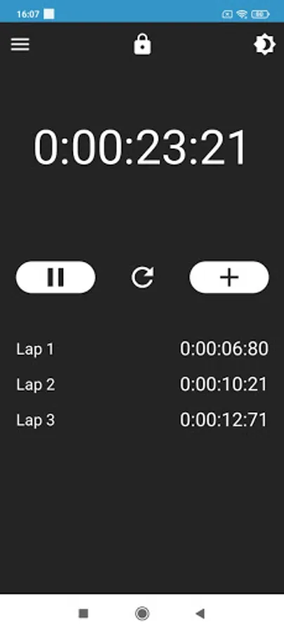 Using Ceries Stopwatch, you can measure your time in unlimited laps. You can record your laps by just pressing the "Plus" button on the screen's right side.