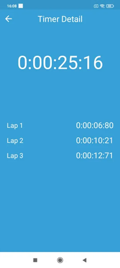 You can easily access the lap list by just sliding your finger on the screen. On this lap list, you can see the lap numbers with total time spent on each lap.