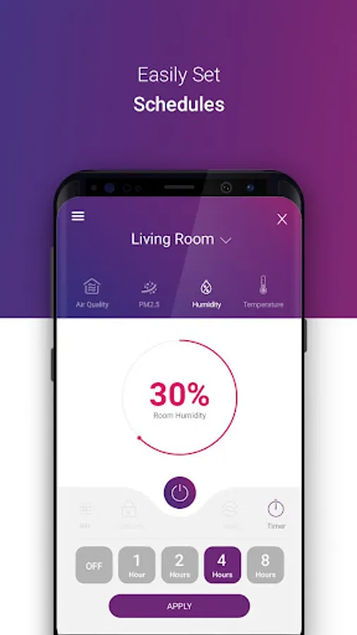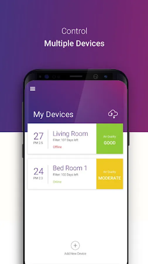 2. Real-time Monitoring, Controlling and Notifications: Ease of access to live indoor air quality and replaceable filter life information, remote operation of air purifier and filter replacement notification.