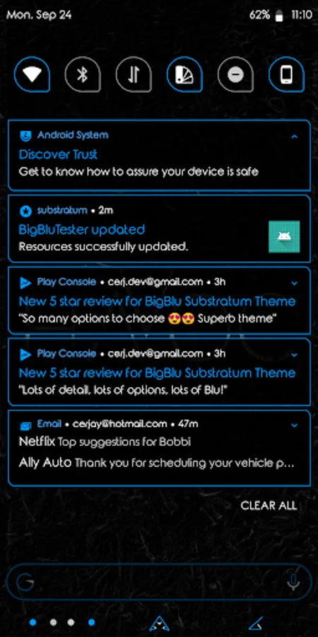 Welcome to BigBlu, a Unique Custom Theme for the Substratum Theme System. Using Black, Dark or Transparent backgrounds and Blue accents, BigBlu will transform your device, and theme some of your favorite apps. Big Blu gives you the option to choose from multiple buttons, or no buttons at all, and they will show throughout the theme and across many themed apps. Just choose the button you want when enabling the Android System overlay and your ready to go.