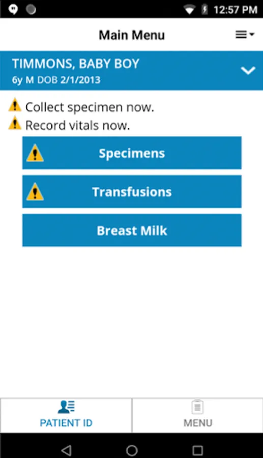Breast Milk Management enables a caregiver to positively identify the patient and verify the management of breast milk by scanning the bottle labels to ensure the correct milk is going to the correct patient.