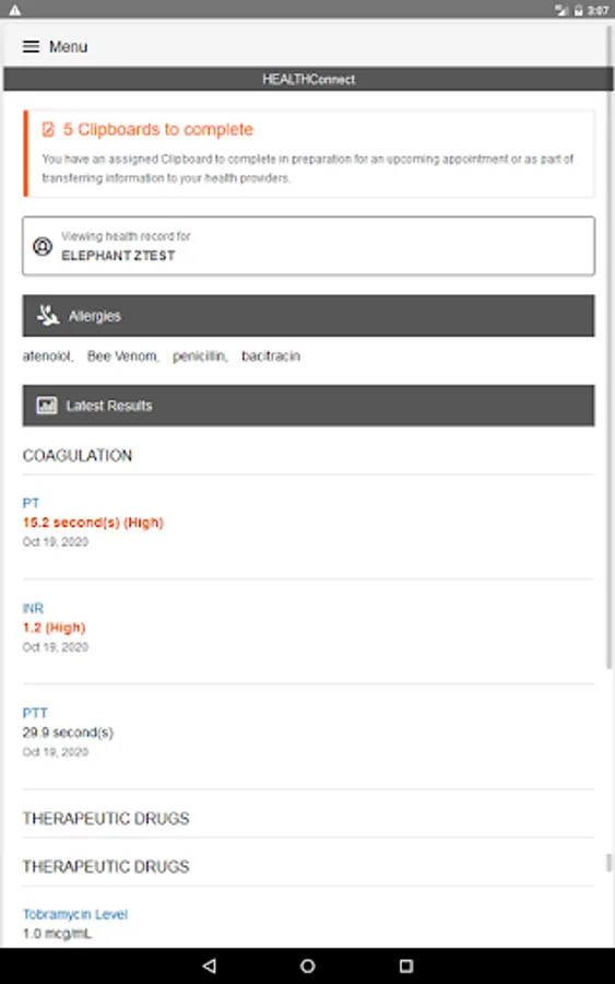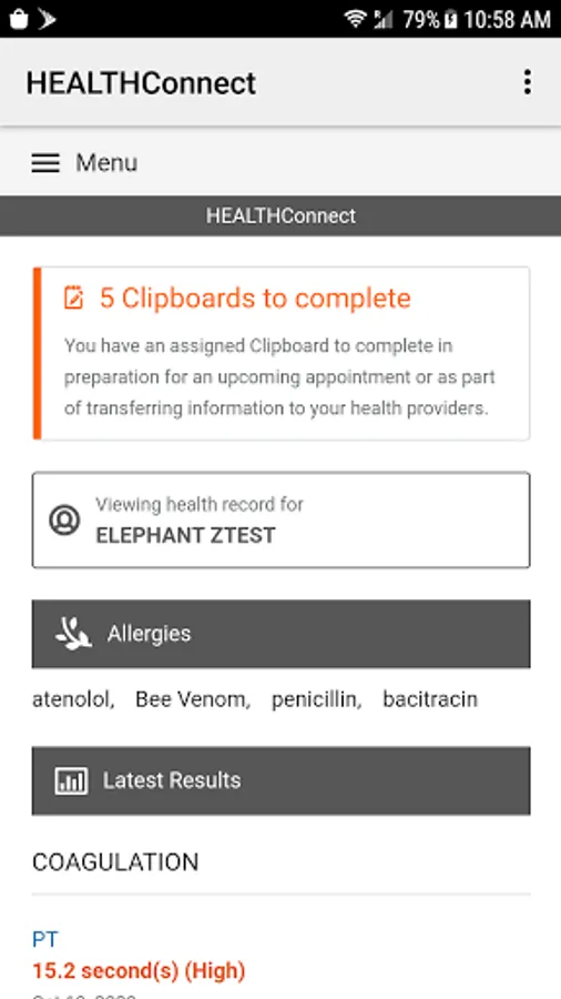 • Access medical information including your allergies, immunizations, medications, most recent vital signs, and more