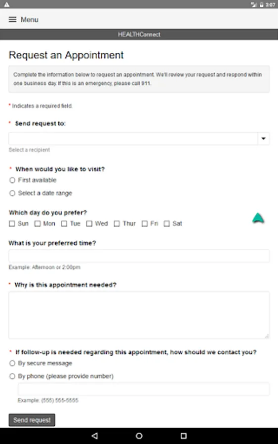After you create your online HEALTHConnect account, simply sign into the mobile app with your username and password. You can also set up Fingerprint to avoid typing your username and password again. Once logged in, you can connect with your care team using the following methods: