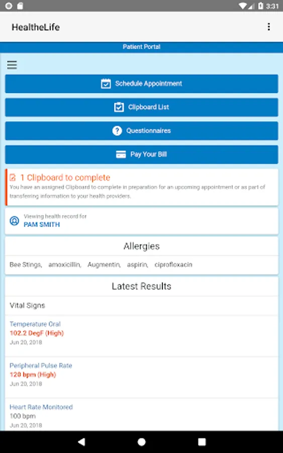 Through the HealtheLife app, you have real-time and easy access to your health care organization's online portal. This portal shows your latest health care information and provides services needed to plan, understand and engage in your care.