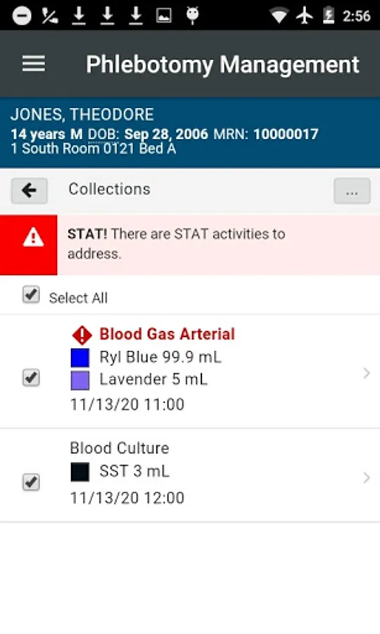 Phlebotomy Management empowers the clinician to plan for and collect specimens by utilizing a multi-patient worklist. The multi-patient worklist displays a subset of relevant clinical information pertaining to specimen collection for the patients and locations selected.