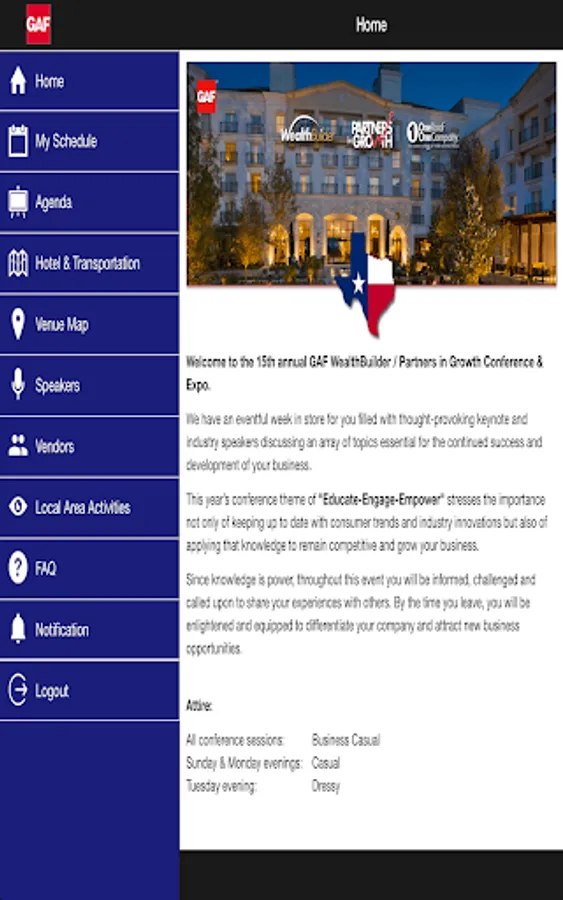 The official mobile app of the 2017 WealthBuilder Partners in Growth Conference contains important information regarding the trip to San Antonio: including conference agenda, speakers, announcements, social and other real-time updates. With features like real-time polls & feedback, this app will help you navigate the conference.