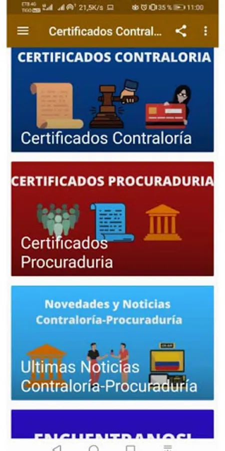 The Certificates of the Comptroller's Office and the Attorney General's Office are tools that have been created by the Office of the Comptroller General of the Republic and the Attorney General's Office of the Republic. These Certificates are important supports to indicate to us if the Comptroller's Office and the Attorney General's Office have carried out audits, controls or investigations, and have taken corrective actions. It is available to all natural persons and legal entities in the country.