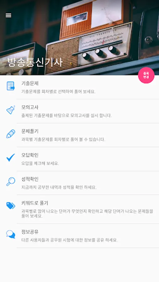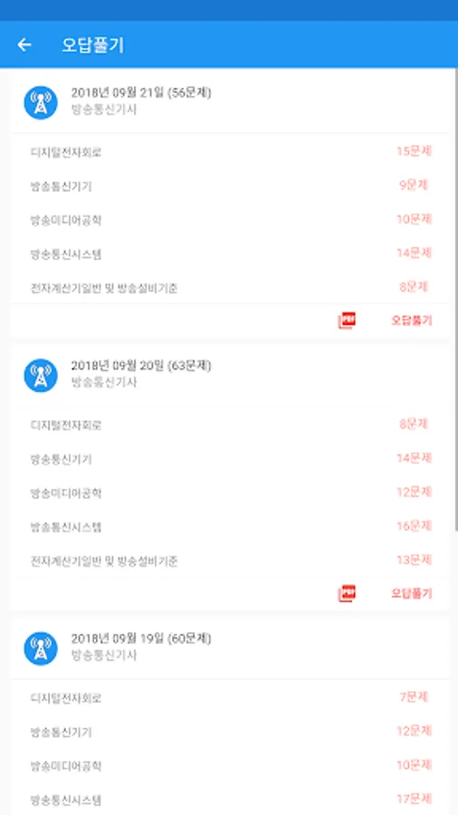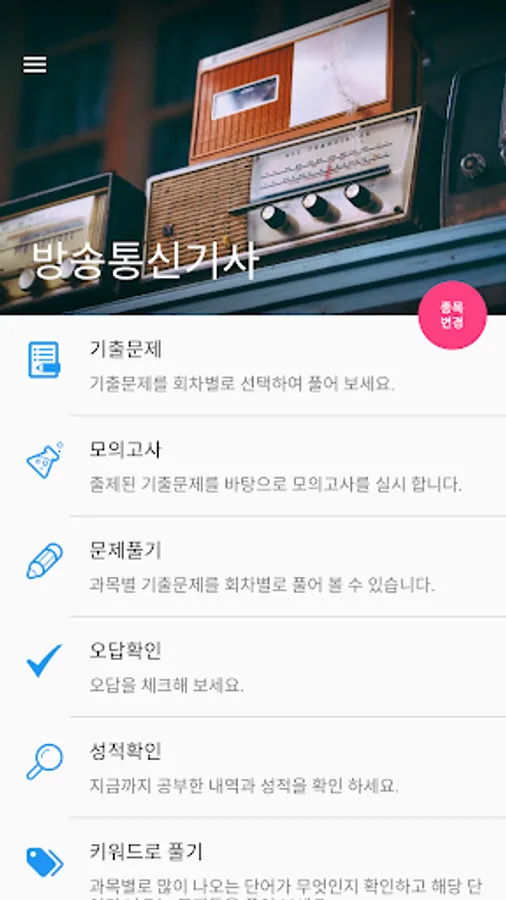 기출문제 - 각 시험별 기출문제를 풀어보는 메뉴입니다.