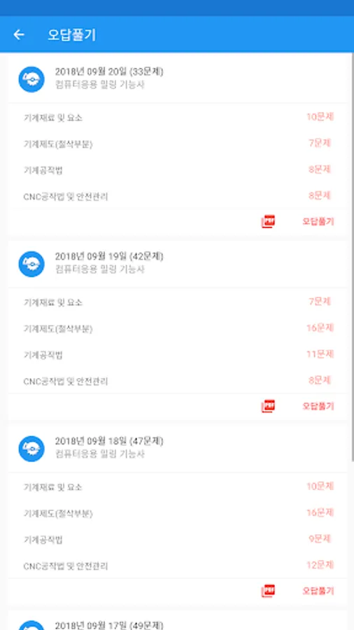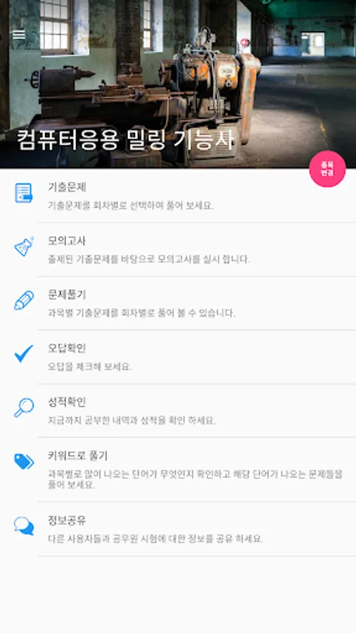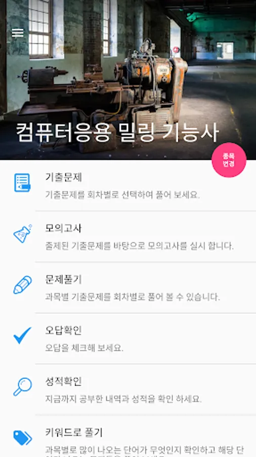 기출문제 - 각 시험별 기출문제를 풀어보는 메뉴입니다.