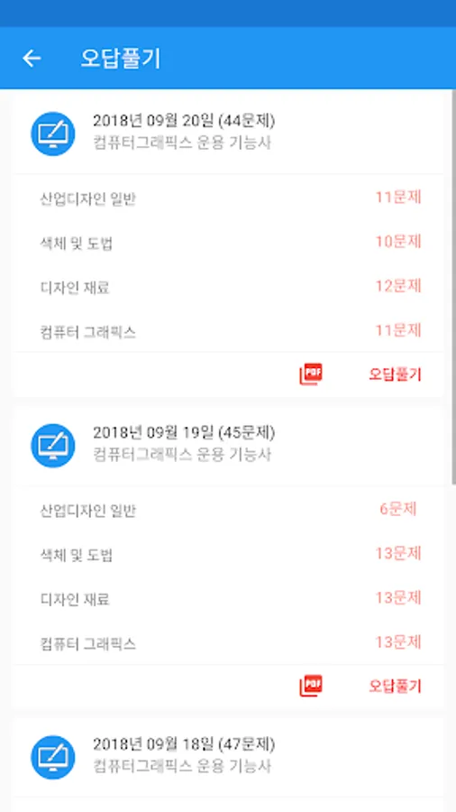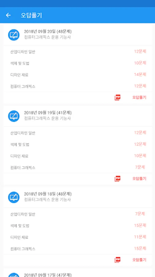 기출문제 - 각 시험별 기출문제를 풀어보는 메뉴입니다.