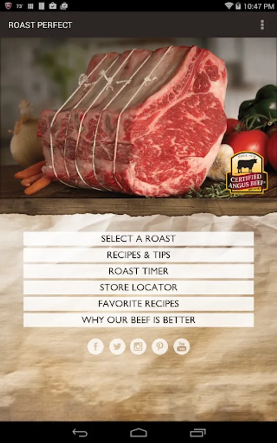 Create the perfect roast and make a meal to remember. The Roast Perfect App gives step by step instructions, from choosing the ideal beef cut at the store to how to prepare, roast and serve. The app helps you: