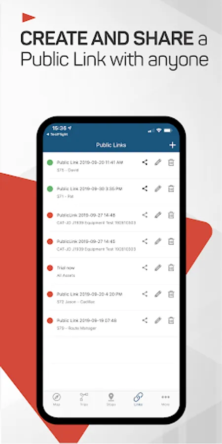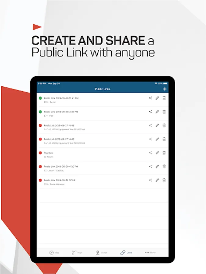 • Send a Public Link to anyone so they can view the location and status of any fleet asset.