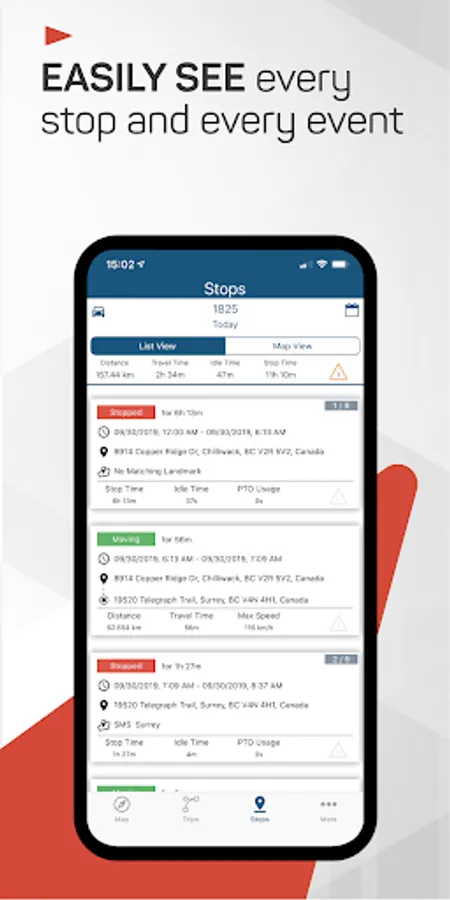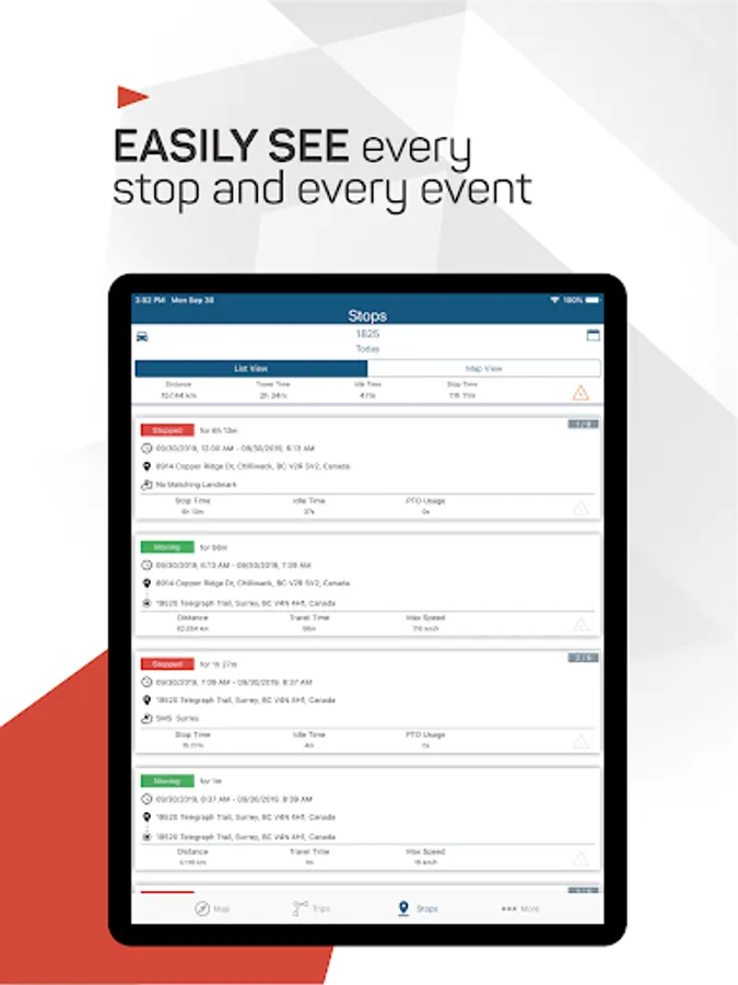 • Easily view over-speed, aggressive driving, and excessive idling events.