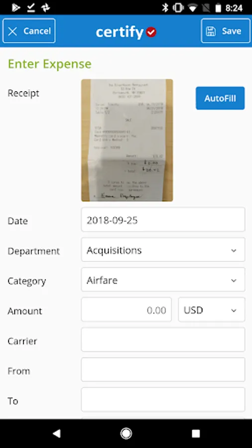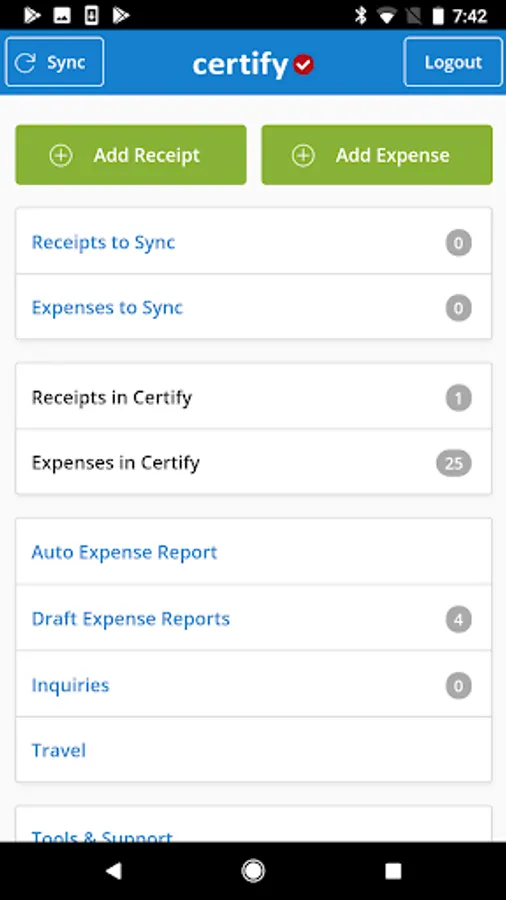 Use Certify Mobile on the go to capture expenses and photos of receipts as you make purchases and create your expense report later. Capture receipts on the plane in offline mode and synchronize when you land. Photograph a stack of receipts when you sit down to compile your expense report. Certify Mobile works the way you work!