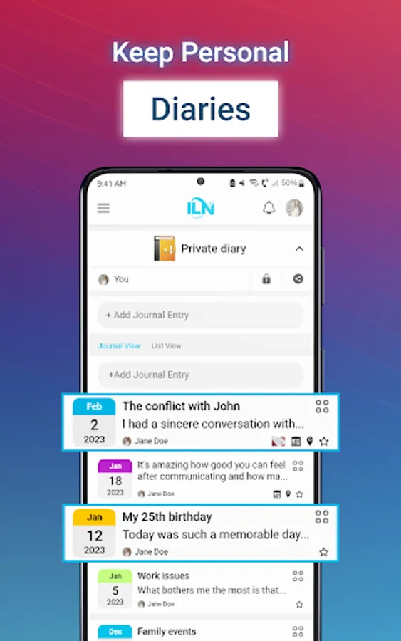 ILN makes it easy to keep track of everything in your life. With our note-taking app feature, you can make notes for anything you need to remember, and organize them into folders for easy access. You can also add images, video, documents, and more to your notes, and like and comment on notes that are shared privately or publicly.