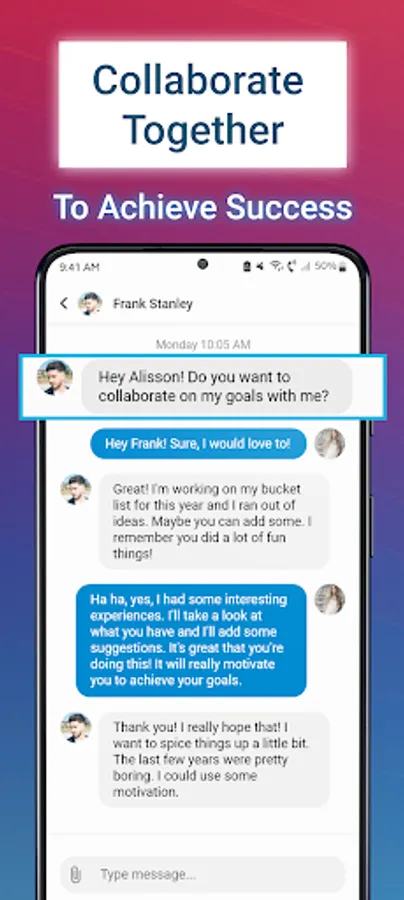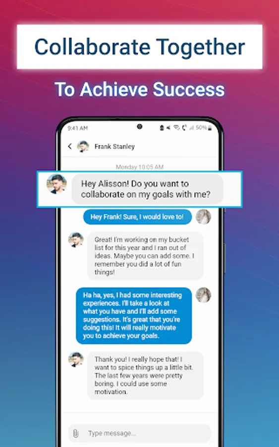 Stay organized and productive by creating groups and chat with fellow group members. Create a group to share notes, ideas, to-do lists, diaries, and goals with friends, family, or coworkers. Collaborate using chat to share files, ideas, goals, events, and more. Create a group chat of up to 10,000 people.