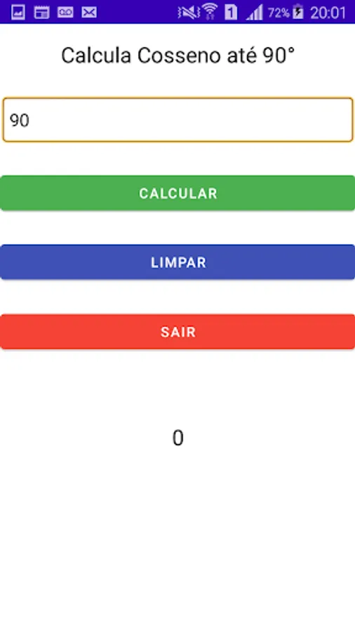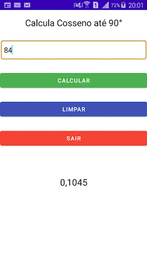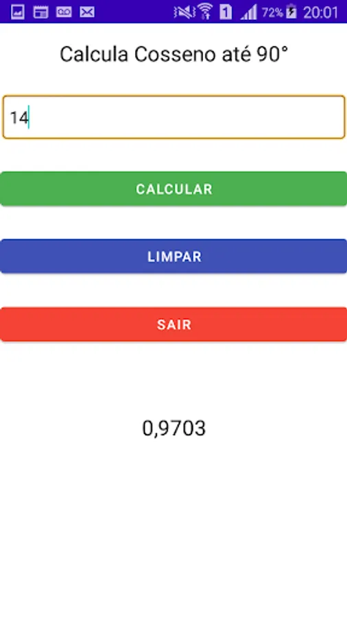 The application is intended to obtain the calculation of Cosine between 1 and 90 degrees.