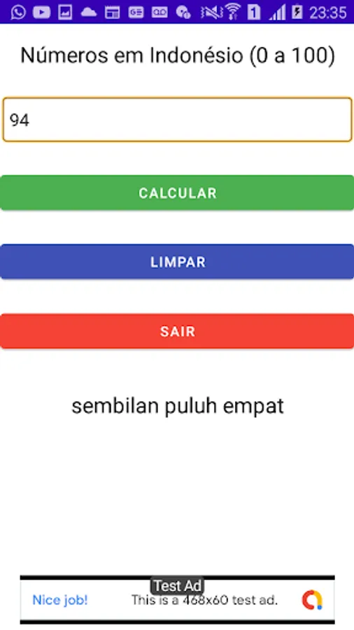 The app aims to translate the numeral between 0 to 100 in Indonesian.