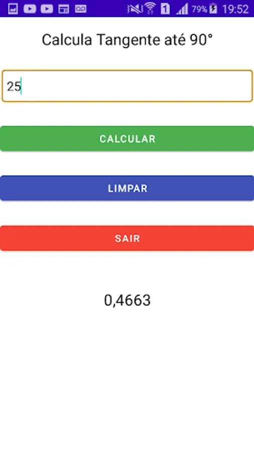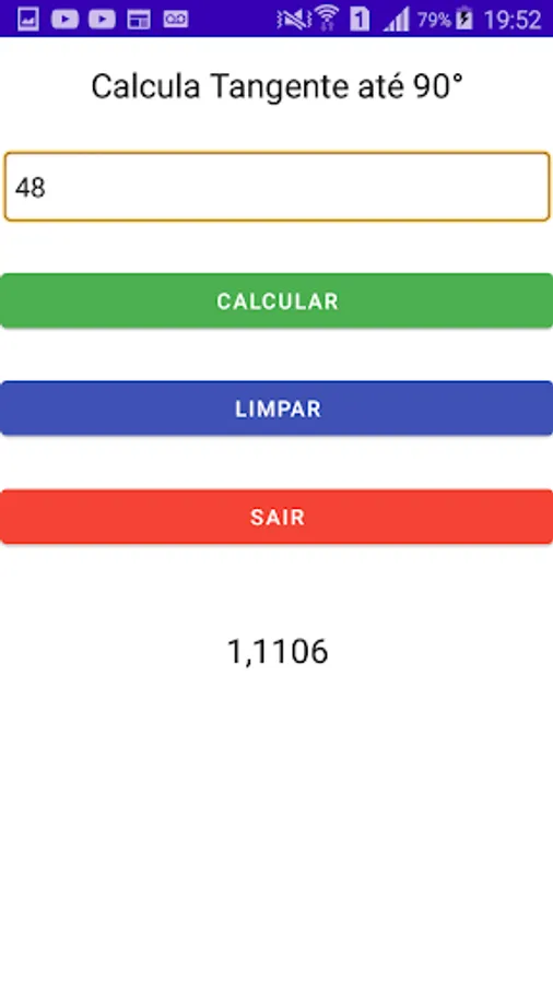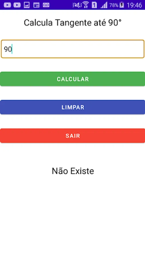 The application has the purpose of calculating the Tangent up to 90 Degrees.