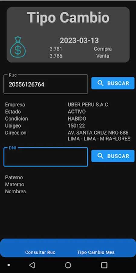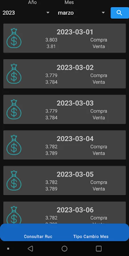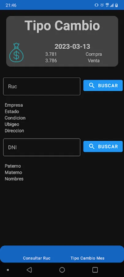 Check with greater confidence and security that is provided and have the exchange rate of the day at hand and also check the exchange rate per month, check the names just by placing the DNI enjoy the app.