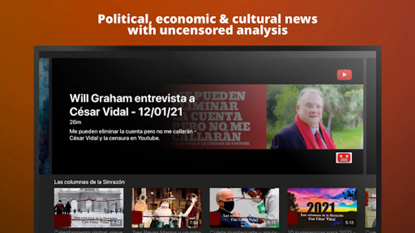 What nobody else tells you, all the political, economic and cultural news with uncensored analysis from César Vidal.