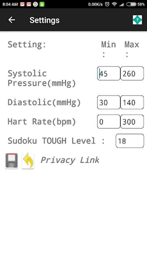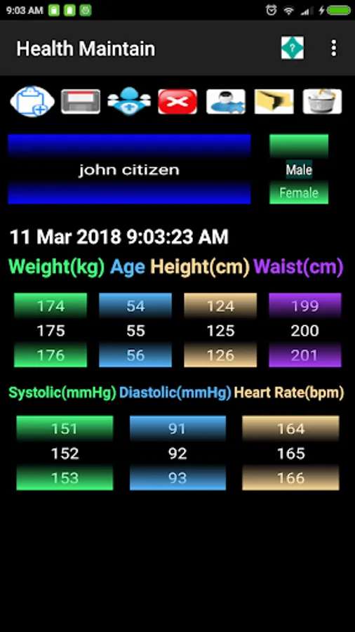 Health Maintain App offers a easy way to record, maintain, review, display and export a persons daily cardio readings, record any health issues/resolutions/medications and add calendar events to the default Android calendar. Allows for multiple people to be entered into the system. Hence can be used for family, professional, work monitoring of people/patients.Readings that can be entered include a persons Name, Age, Weight, Blood pressure readings and heart rate. These readings can be reviewed either directly, exported via csv file and displayed in a graph (only the last 20 readings are displayed in a graph). Events page : Add any Health Events,requirements for the person in the system and add calendar appointments/events associated etc. Allows for three separate