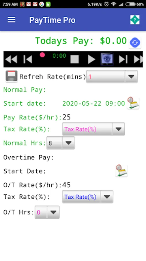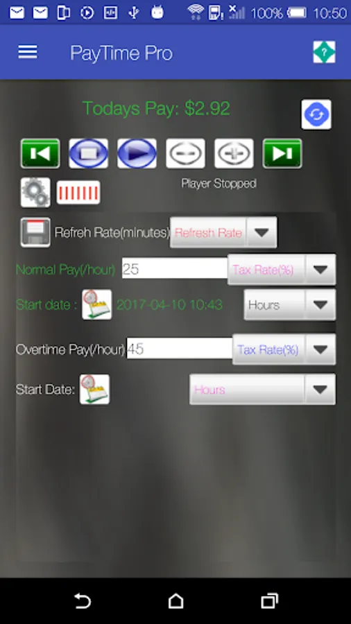 PayTime an app to cheer you up when your working! Calculates your hour pay per minute and displays your pay. Knowing what you make improves your day.While you are watching your pay increase listen to an online radio station or play your music files or generate your winning lotto numbers or play one of the many flipper games i.e. Coin.... all in the one app while you watch your pay increase! Makes working a breeze.