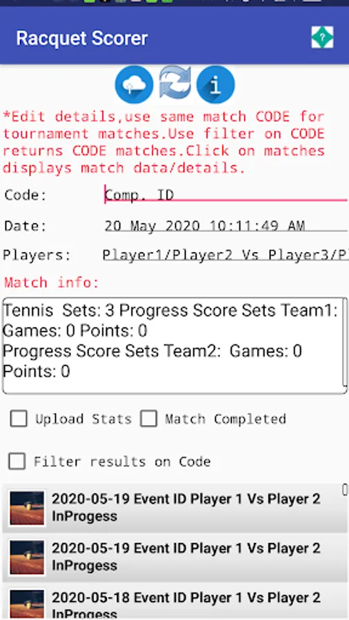 Score,create stats,add players,send,review stats during & after game of Tennis,Table Tennis,Badminton and Squash. Allows a person to score a match by clicking on the players Winners or Errors. Can be used by any person wanting to detail the stats of a match for personal, commercial and training reasons. Singles and double players match scoring supported. Easy to use App contains info/instructions in the App and on the website cesd.com. The app maintains and updates the match score and also stores the match stats of each player. Allows for the addition of user defined players. Match comments can be created, export and emailing of match progress stats and comments. The match stats can be viewed once the match has completed in the stats viewer screen and also the inplay stats can be saved and emailed during play. The app allows for both singles and doubles play, will automatically set the adjust servers and receivers after games, sets, tie breakers(You can manually change the server and receiver by clicking the players serve button. This can not be done once a service game has started i.e. a point has been played.) Settings allows for the selection of default settings for each match and game type i.e. match sets if tie breakers or Advantage sets, set points. In the players screen user defined players can be added, along with their details i.e. club, country, right handed play, comments about each player etc Appointments and details of each player can be created and sent to required people. List of players data/stats which can be stored during play and later displayed/reviewed :- The Interface is swipe driven. To more to a new screen swipe the screen right to left, left to right to go back. For quick play select the start betton to comence the game and when a player scores click the related button for the player. I.e. Use the control buttons to score the point (or error) for each point played. i.e. if the serving player serves an Ace click button with a ball and star image for that serving player. If the serving player serves a fault click the button with the tennis ball and a red cross on it. If any player hits a winning forehand, click the button that has a green tick and racquet image on it for that player.Note the racquet directions indication if it's a forehand or back hand. If the players hits a forced error, click the image with a red racquet and both arms are red. For a unforced error click the image with a red racquet for that player that created the error. It is the same with Volleys which are represented with a image of a tennis ball in the centre of the racquet. To change server click the image of the tennis ball next to the players name. The return server is represented with a image next to their name with a ball and racquet. (Non-serving or returning players only have a image with a racquet next to their names.) Servers can only be changed before the next of the game, match after the match has started. Points options for each player are Faults,Aces,Winners ForeHand,Winners BackHand,Winners ForeHand Volley: (Winners FV),Winners Backhand Volley (Winners BV),Errors ForeHand: (ErrorsFH) Errors BackHand (ErrorsBH)Unforced ForeHand (Uf FH) Unforced BackHand (Uf BH) Error ForeHand Volley (Error FHV) Error BackHand Volley. Note :- error types and controls will vary depending on the type of game selected i.e. tennis or squash etc.... Predefined matches can be setup via the comps screen. Enter details of the comp, select the players for each game, click the ADD button to save each game. Open a comp game from the main screen via the drop down menu. The App also has a online radio of stations from around the world.
