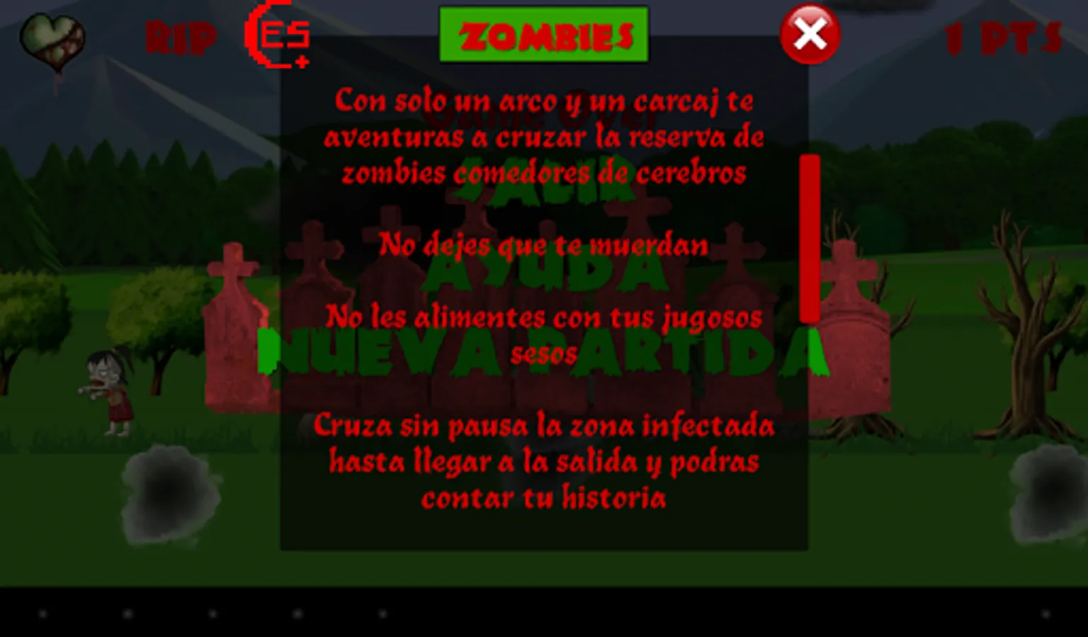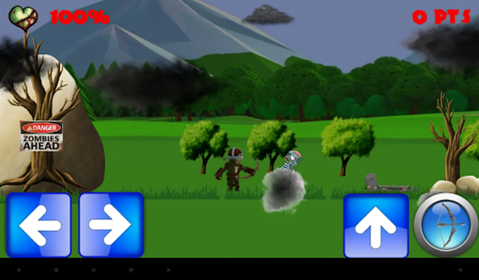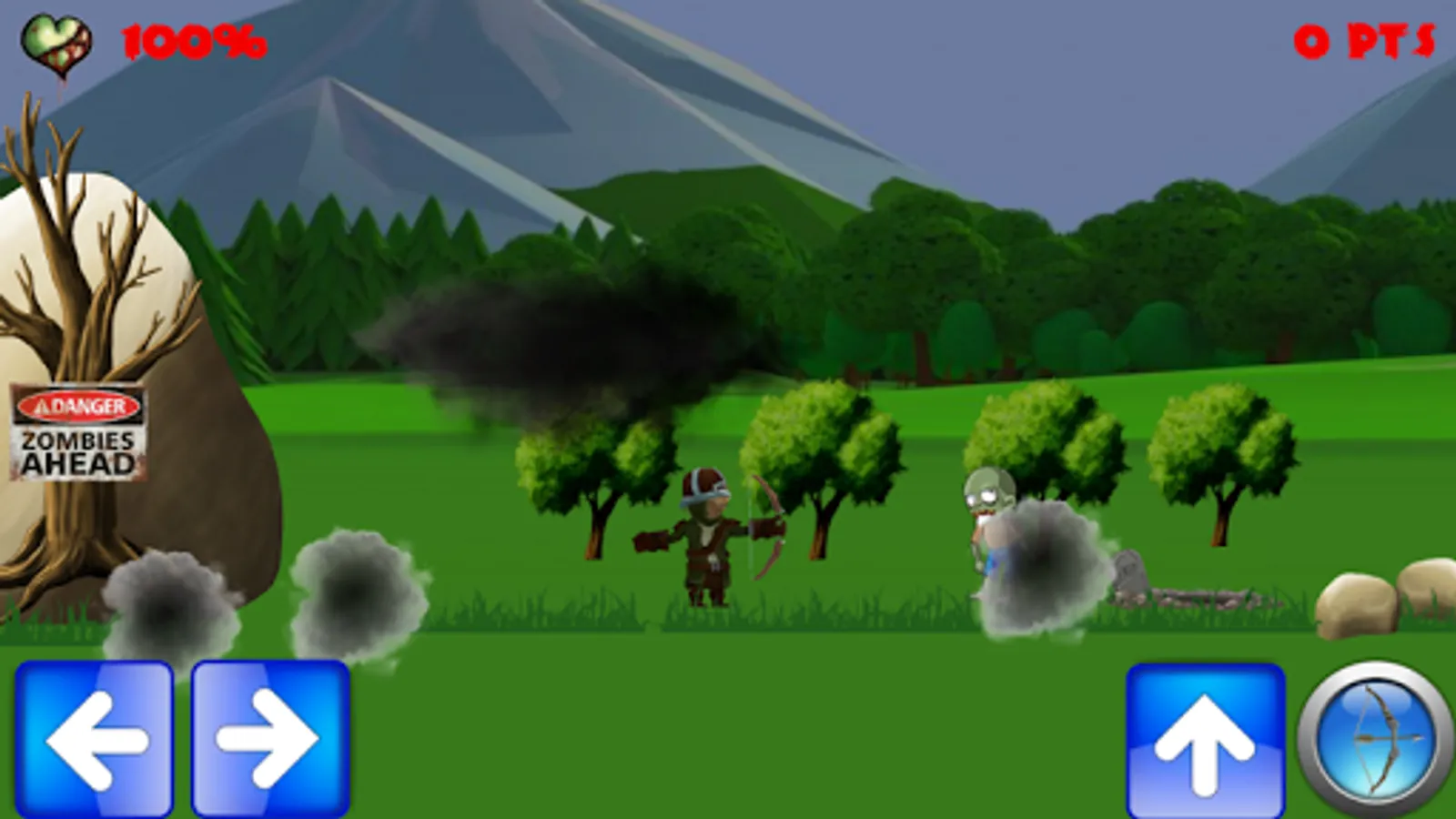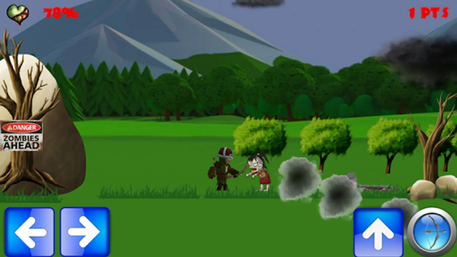 With your bow and your skill you must fight your way into a zombie infested area. Run, jump, shoot, and do not let them bite.