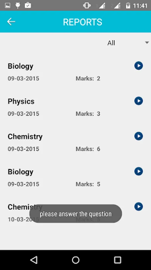 This Application contains pool of MCQs from Biology,Physics and Chemistry subjects.
