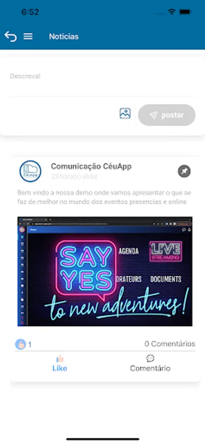 CieloApp is a Brazilian company that offers its clients the creation of mobile applications of events, in order to facilitate the organization of events and increase the commitment of the participants.