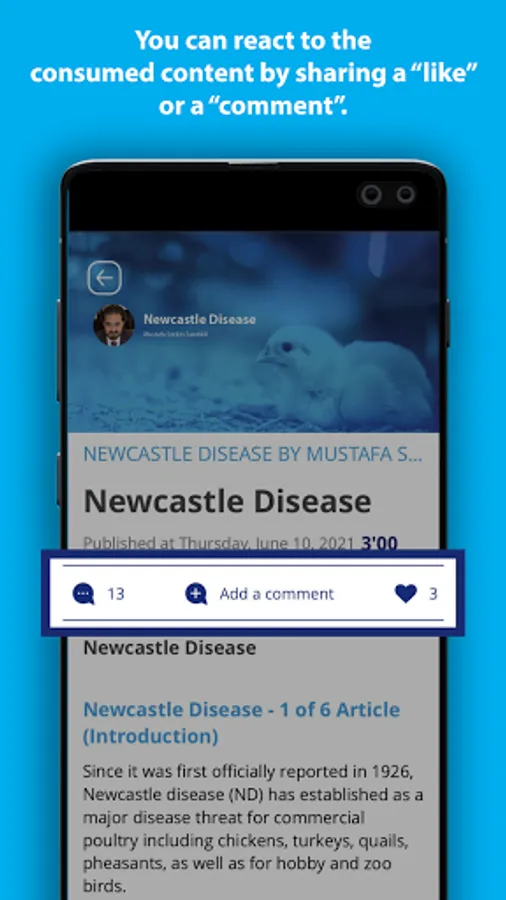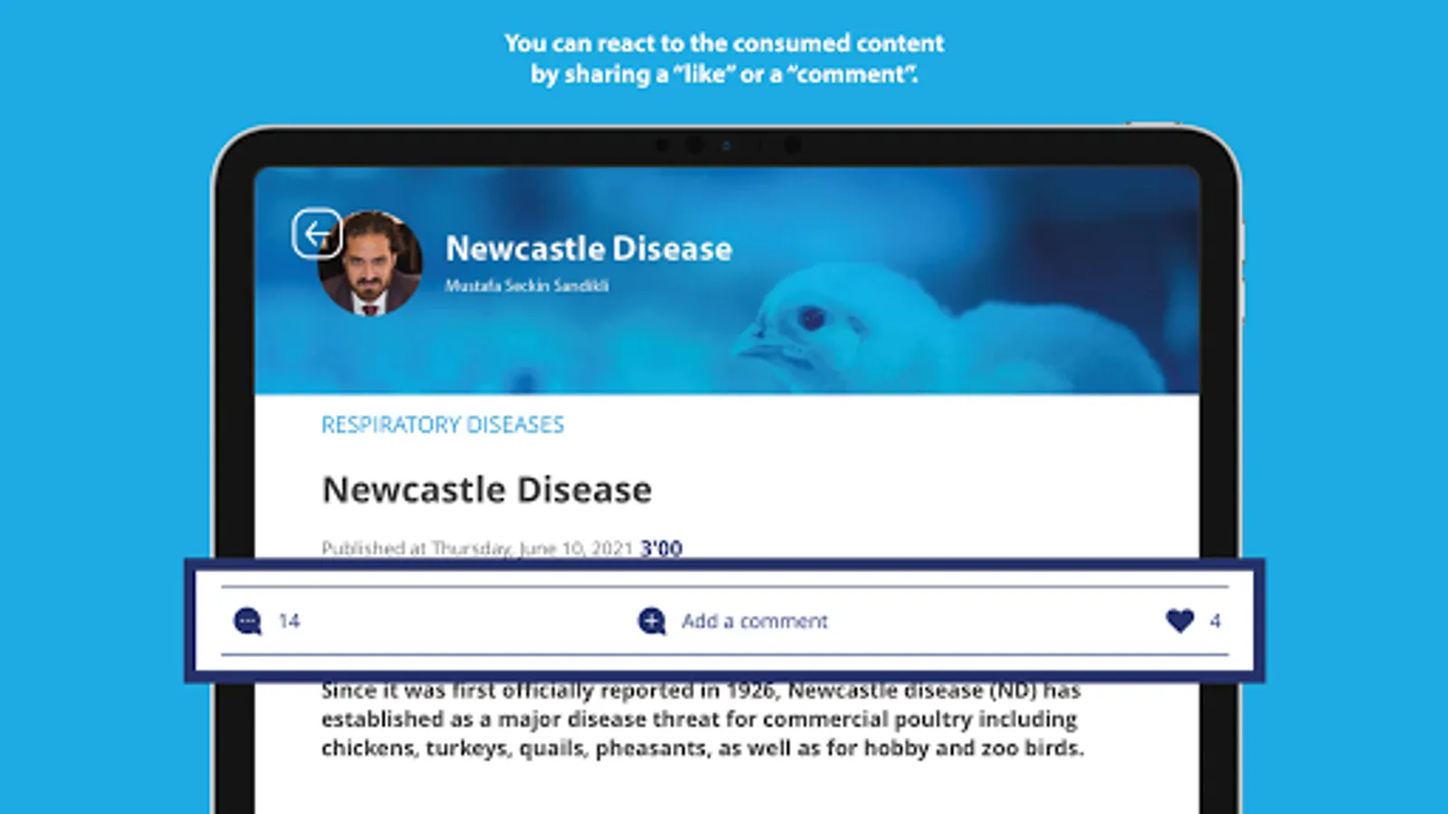 The app also offers you the opportunity to comment, like or download the most preferred content and reconnect with your local Ceva specialist via regular online surveys or a quick “Contact Us” form.