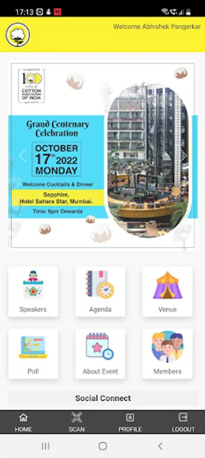 The previous evening (Monday, 17th October 2022), there will be a “Welcome Cocktails and Dinner” at Hotel Sahara Star, Opp: Domestic Airport, Vile Parle (East), Mumbai 400 099.