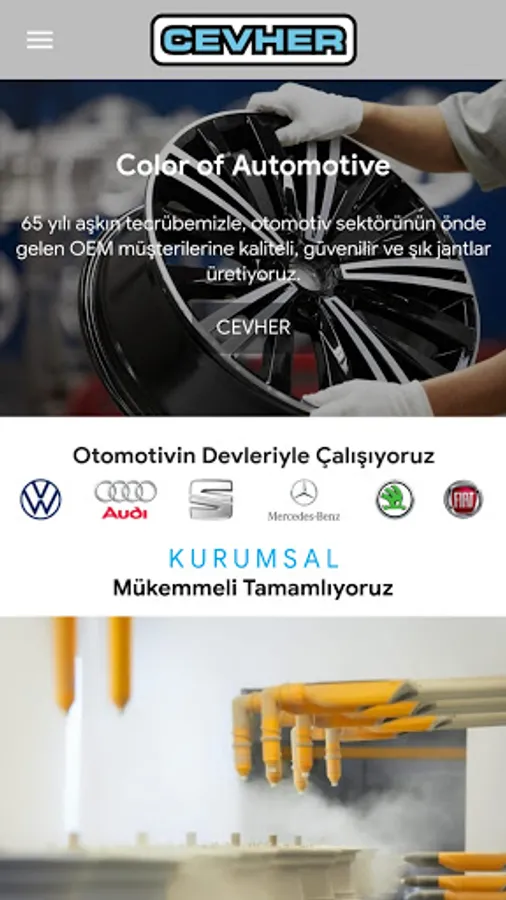 The first wheel was produced in 1984 at Cevher Döküm facilities. Following this, production continued in the alloy wheel factory established in an area of 30.000 m2 in İzmir Aegean Free Zone in 2003. Today, Cevher has an annual wheel production. The capacity of 2 million aluminum alloy wheels, more than 90% of which is exported, is produced in a facility of 44,000 m2, of which approximately 22,000 m2 is closed.