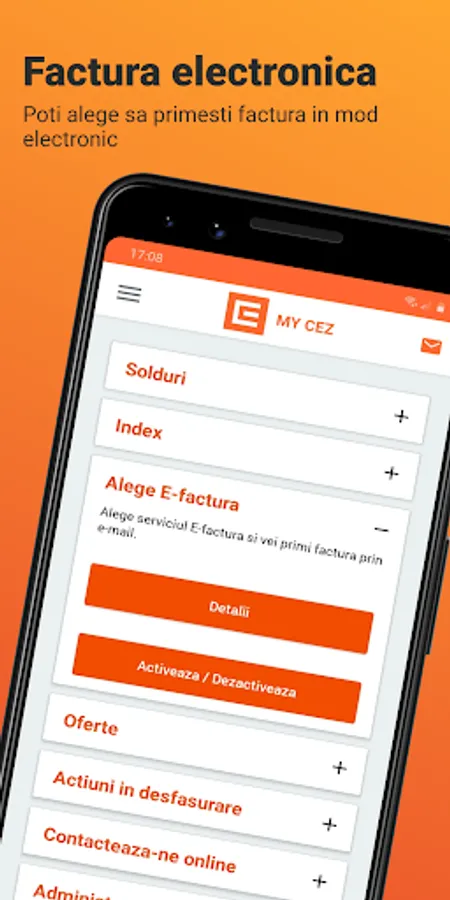 My CEZ is a service made available to clients or potential clients by CEZ Vanzare S.A., the owner of the application and the data operator, from the perspective of personal data processing. My CEZ is protected by copyright law and other applicable laws.