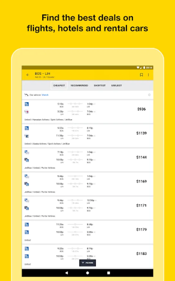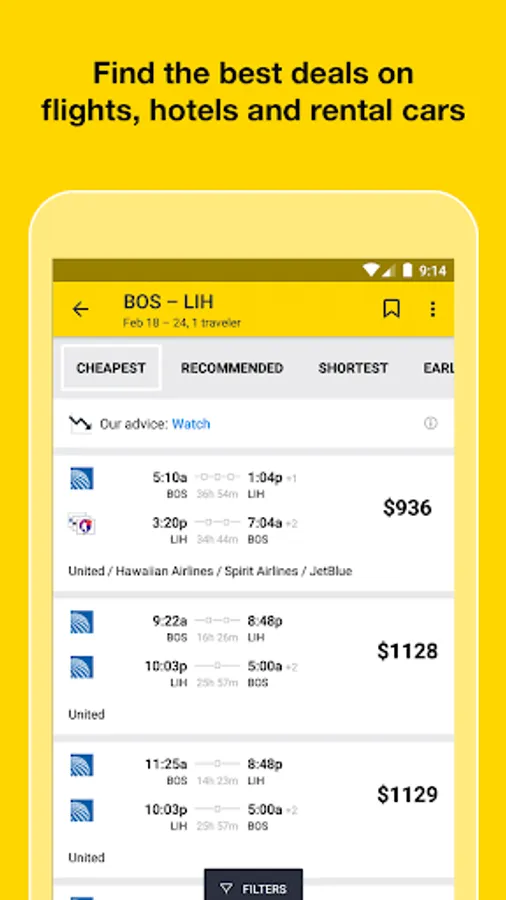 ✓ See just the flights that fit your price range, airport, airlines, number of stops, take-off and landing times