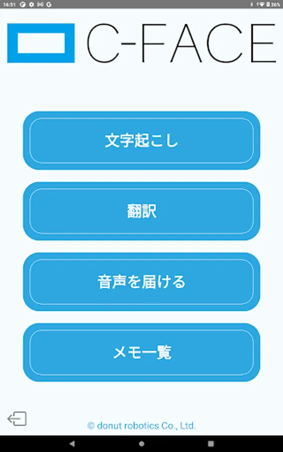 It is a dedicated application that enables you to transcribe and translate voice, and transcribe from voice using a device developed by Donut Robotics.