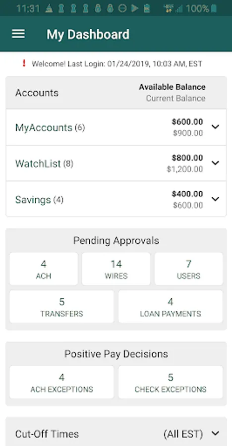 CFB’s Treasury Management Services mobile app allows you to manage your company’s finances on the go in a secure environment that is convenient and efficient. Our app enables you to make decisions and process transactions anytime, anywhere from your mobile device. You can review account history, view check images, create account transfers, initiate bill payments, initiate and approve ACH/Wire transactions, decision positive pay items and much more! Prior to using this app, mobile users must first, be granted mobile app entitlement contact treasuryservices@cfbank.com for more information.