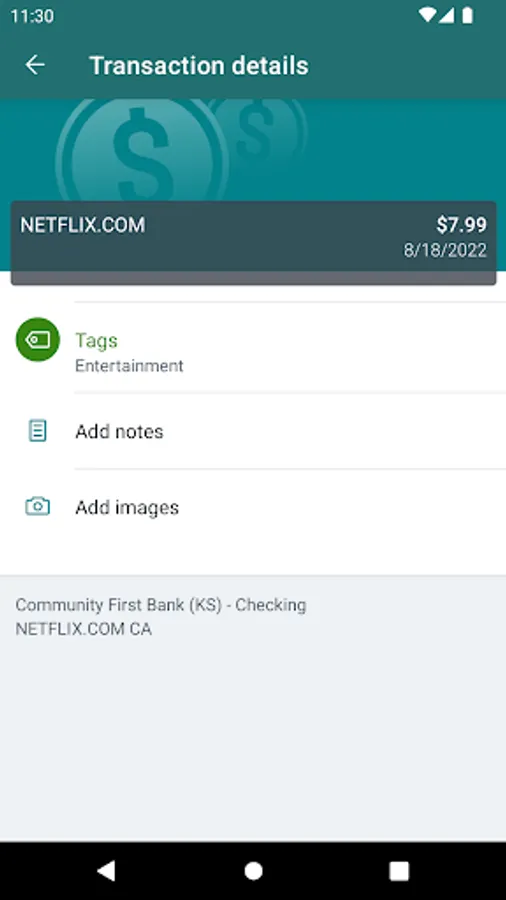 -Keep your transactions organized by allowing you to add tags, notes and photos of receipts and checks.