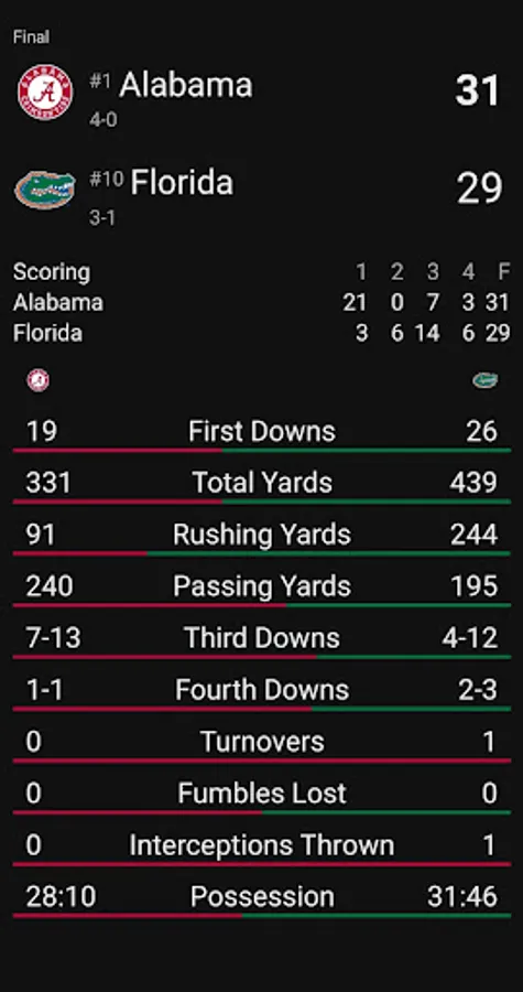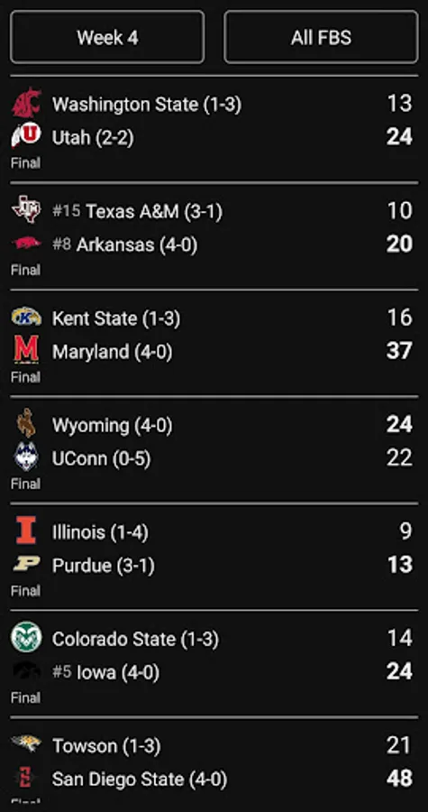 Get weekly college football scores and stats quickly in a fast and simple app that puts the information you care about right at your fingertips, and nothing more.