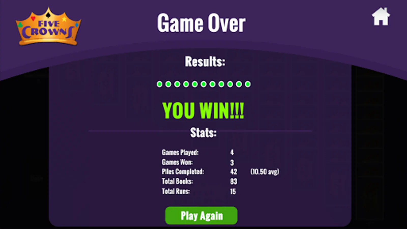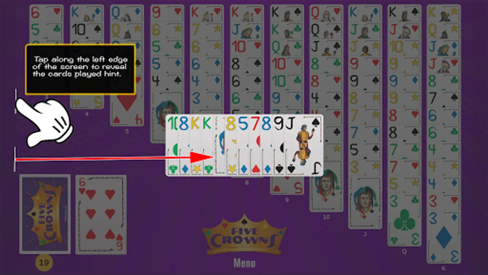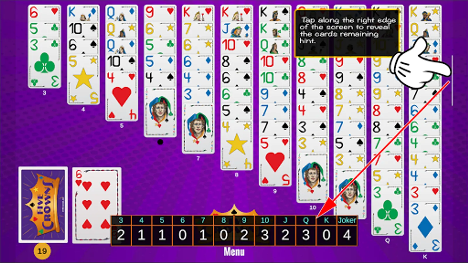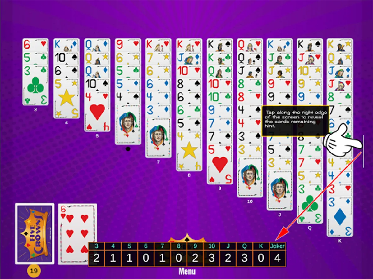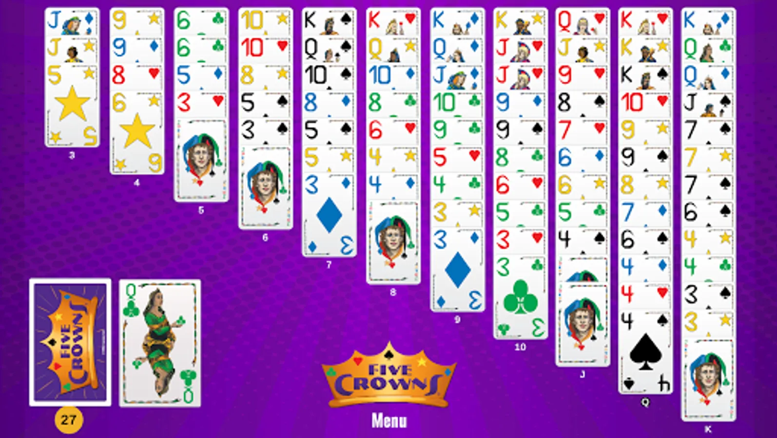 Note: Five Crowns Solitaire is a daily puzzle that utilizes the same shuffle throughout the entire day. Everyone plays the same solitaire. With each attempt to solve all 11 columns, you gain knowledge of what cards are coming and your strategy improves. We encourage you to see how many tries it takes you to win and to challenge and compare achievements with your friends.