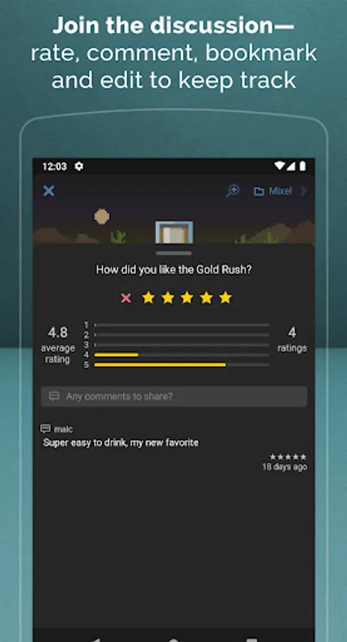 ✨ Missing a cocktail? Create your own cocktail and share with friends. Your information is backed up to the cloud, so your data is always available. Switching devices? Just sign in to your Mixel account to pick up where you left off.