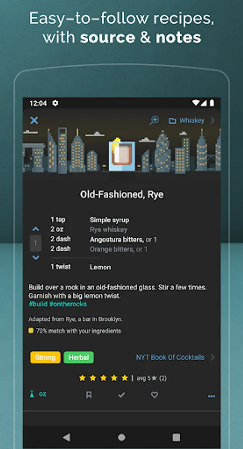 👅 Cocktail recipes for every taste. We give every recipe 1 or 2 flavors, so you can explore new mixed drinks. For example, the Margarita is sour, the Old Fashioned is strong, the Martini is dry, and the Bloody Mary is spicy/savory. We did this for every recipe! Recipes are organized into packs including holiday cocktails, gin drinks, whiskey drinks, vodka drinks, tiki cocktails, and many more! Aperitivo anyone?