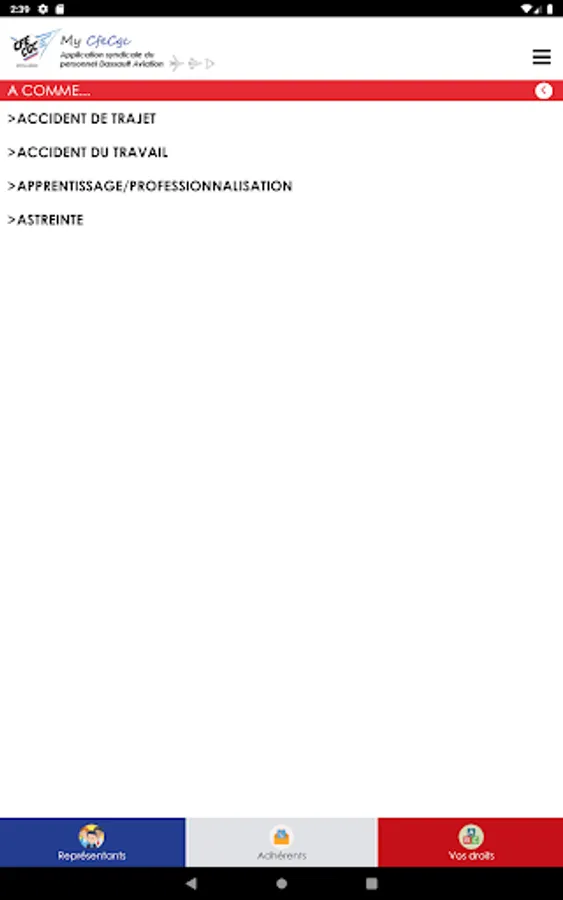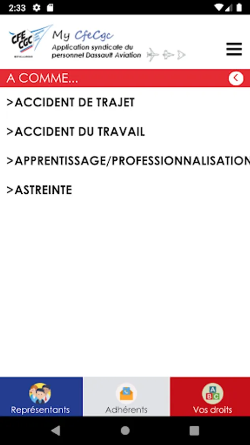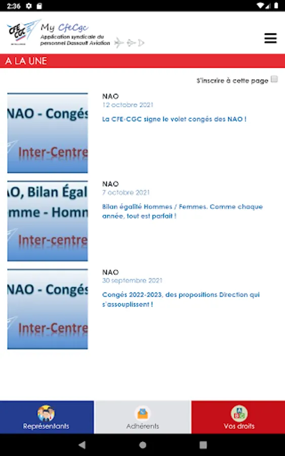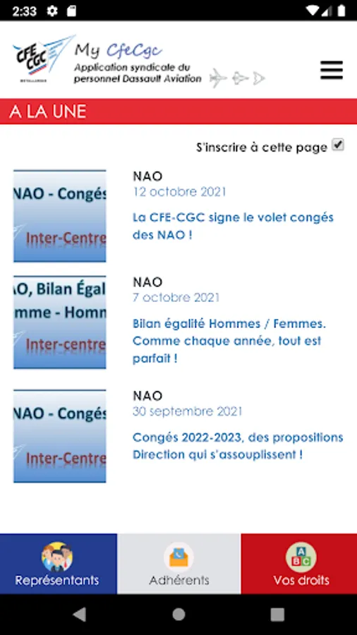 This application developed by CFE-CGC activists from Dassault Aviation will allow you to have: