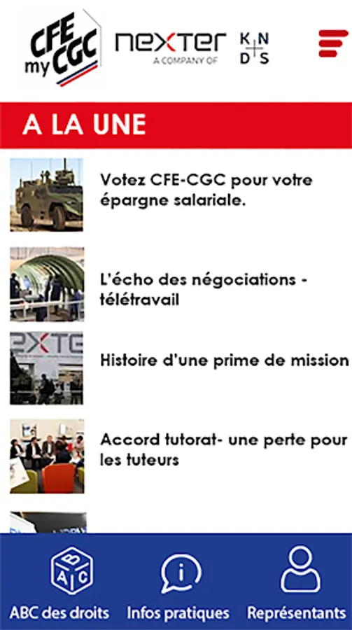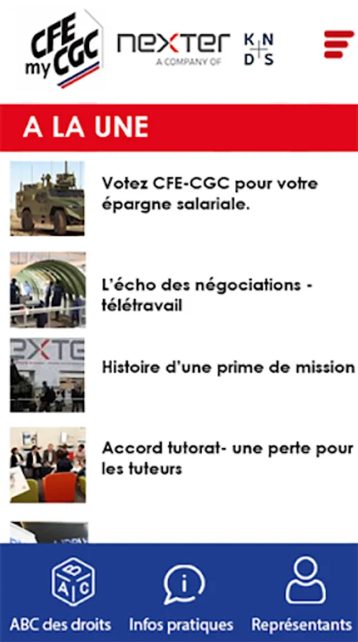 This application developed by the CFE-CGC activists of Nexter will allow you to have:
