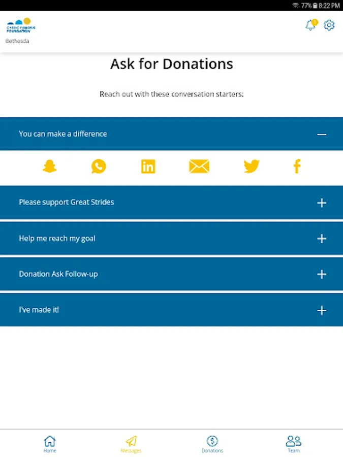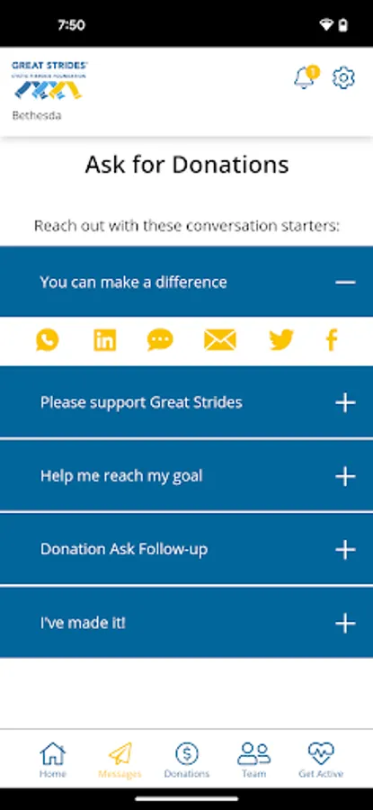 Easy-to-share fundraising messages for text, Facebook, Twitter, LinkedIn, Snapchat and email