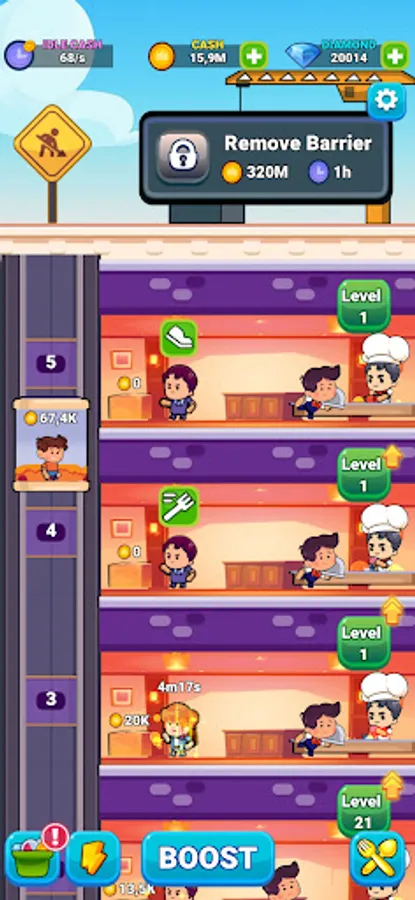 Your job is to click on the screen to create and build factory that create many product like Fast Food, Pastry, Cafe, Drinks, Beverage...
