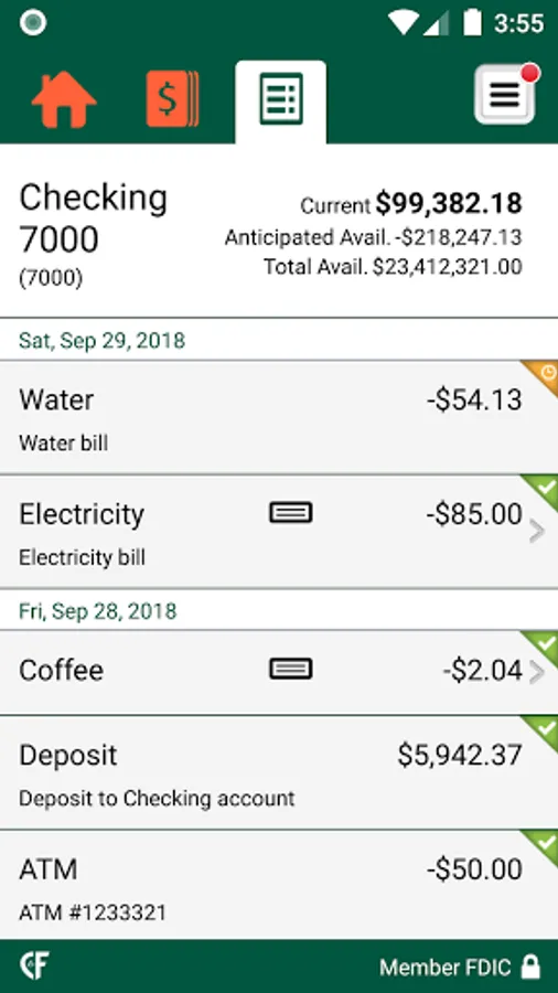 • View recent transactions, including check images