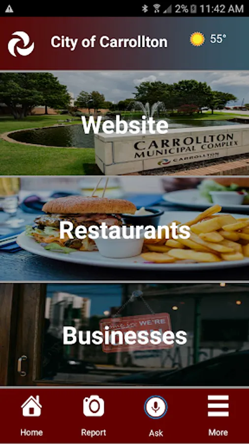 The Carrollton app is for anyone who lives in, or visits, the City of Carrollton, Texas. The app has integrated image recognition technology to enable users to report issues to the city by just snapping a picture with your smartphone and submitting it to Carrollton for review. Additionally, the app allows users to search and view specific restaurants and businesses in Carrollton and even has a way to add your very own likes to help personalize your experience. The Carrollton app will be continuously adding other city services from the city so keep it handy as we work to increase the number of features.